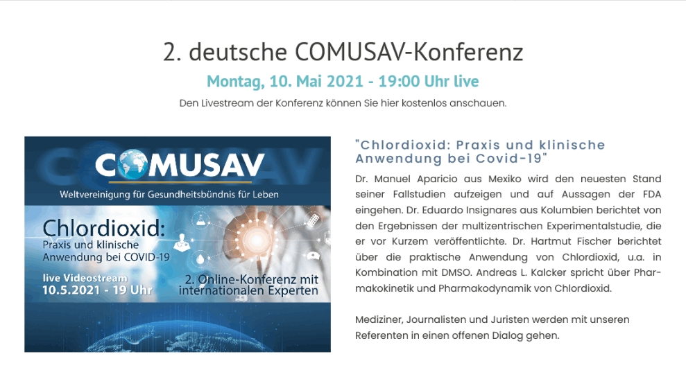 Zweite deutsche Comusav-Konferenz: Chlordioxid - Praxis und klinische Anwendung bei Covid-19